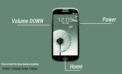 2- ندخل إلى وضع الـ Download بالضغط على الأزرار الثلاثة التالية معاً ( زر خفض الصوت + زر القائمة + زر التشغيل ) .